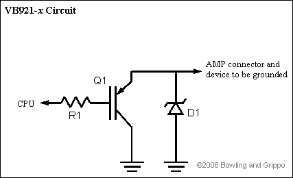 Besides the VB921 itself, the VB921 circuits have only one other component: a resistor to limit current from the processor (which should be 10 to 25 milliAmps). The specified 1.0K Ohm resistor will work in virtually all applications. D1 is not installed with the VB921, since it is capable of withstanding several hundred volts of flyback EMF.
